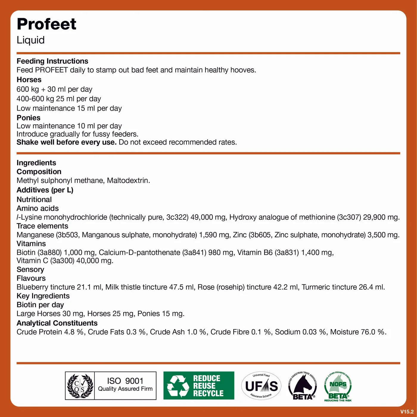 Clean Sport: ProFeet Liquid is audited under the BETA NOPS Scheme as suitable for FEI competition. Check local authorities if racing or competing internationally.